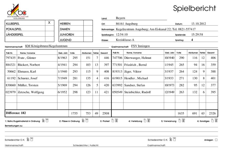 2.H: KM Königsbrunn-Kegelzentrum - FSV Inningen