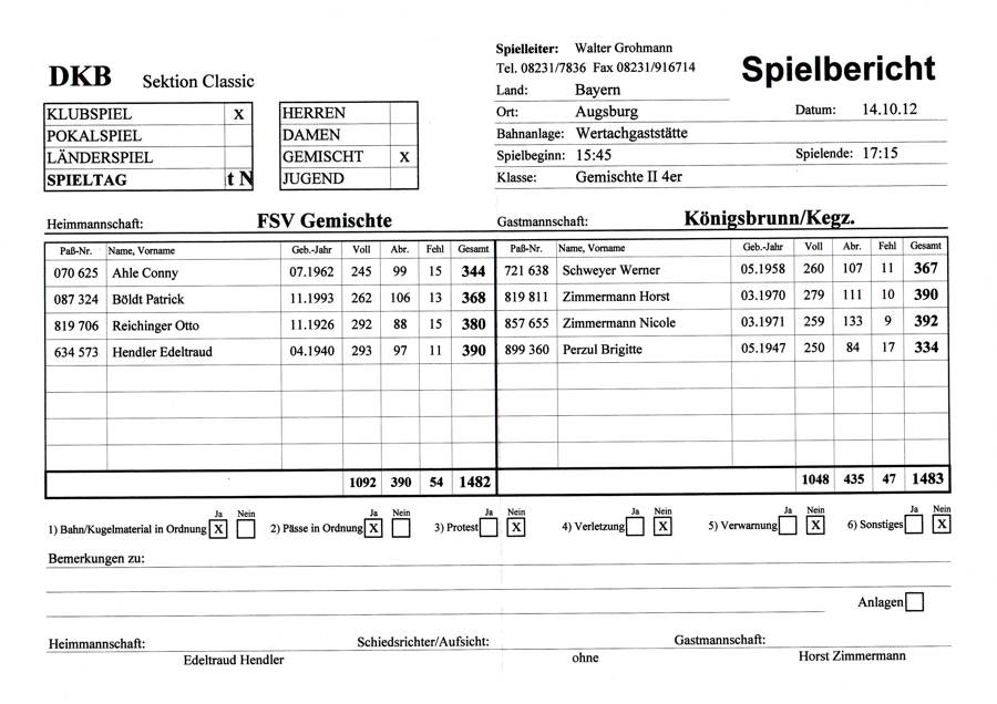 G: FSV Inningen - KM Kegelzentrum-Königsbrunn