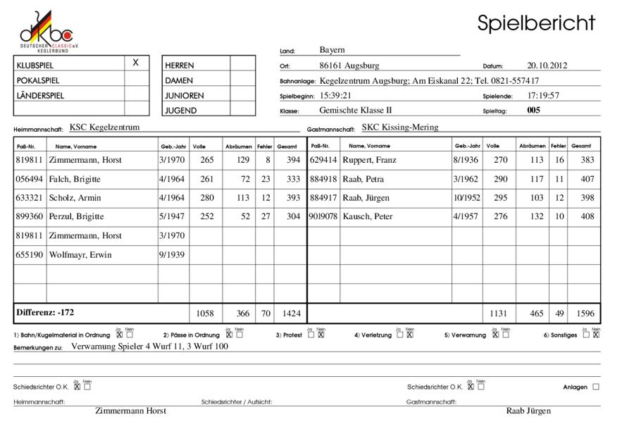 G: KM Kegelzentrum-Königsbrunn - SKC Kissing/Mering