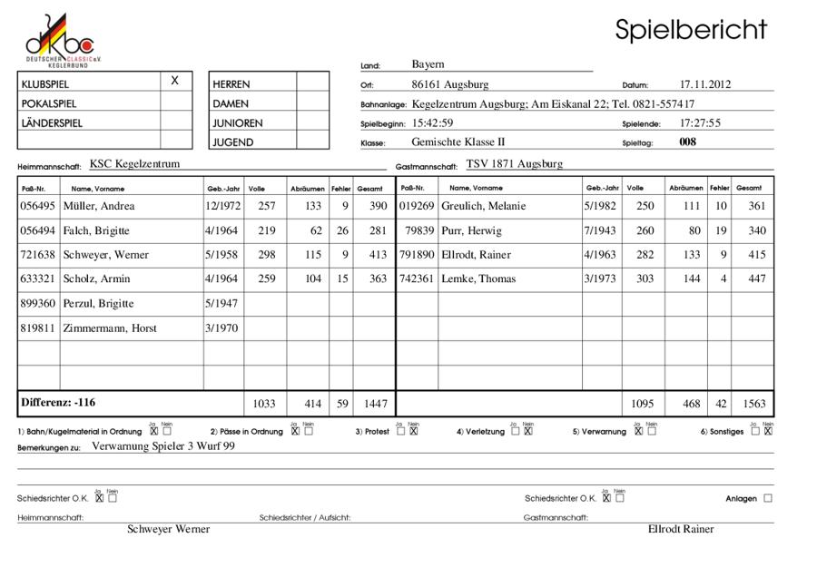 G: KM Kegelzentrum-Königsbrunn - TSV 1871 Augsburg