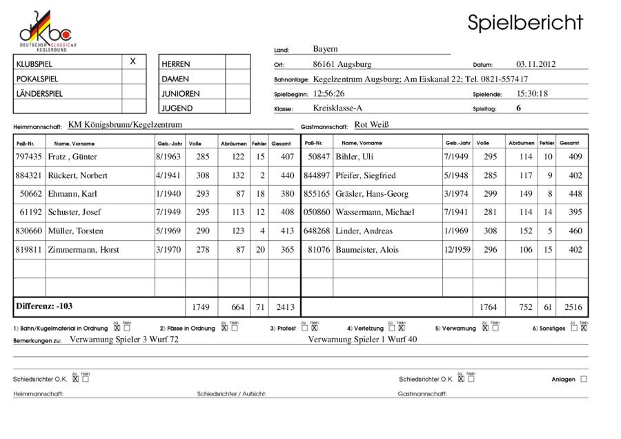 2.H: KM Königsbrunn-Kegelzentrum - Rot Weiß Augsburg