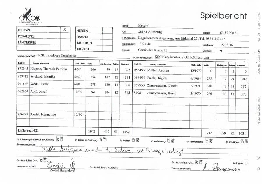 G: KSC Friedberg - KM Kegelzentrum-Königsbrunn