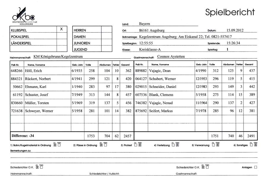 2.H: KM Königsbrunn-Kegelzentrum - Cosmos Aystetten