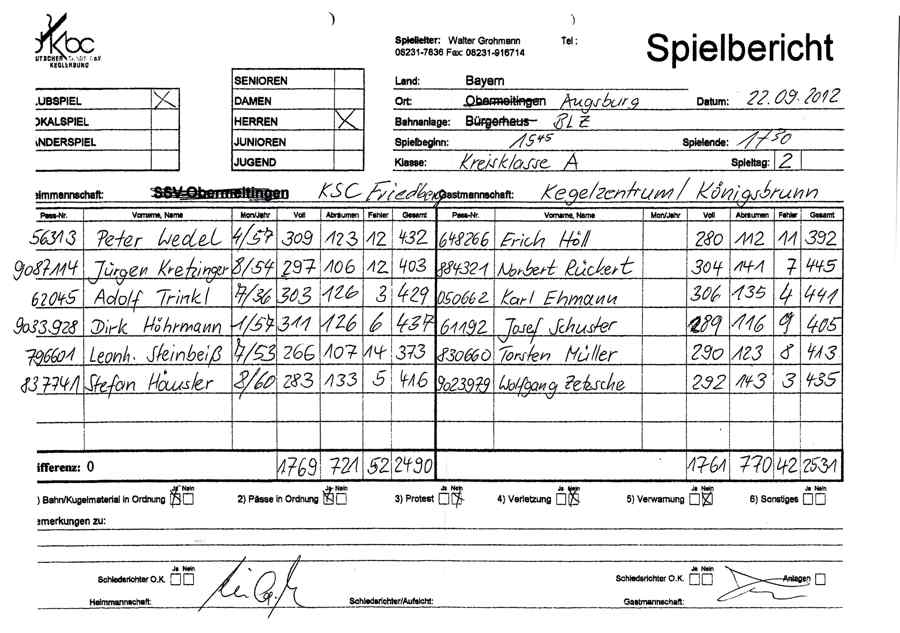 2.H: KSC Friedberg - KM Königsbrunn-Kegelzentrum
