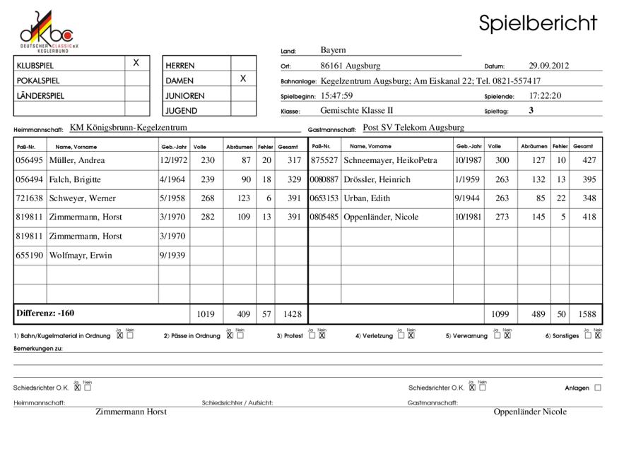 G: KM Kegelzentrum-Königsbrunn - Post SV Telekom