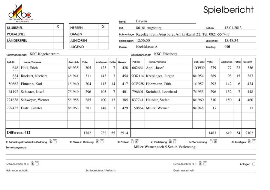2.H: KM Königsbrunn-Kegelzentrum - KSC Friedberg