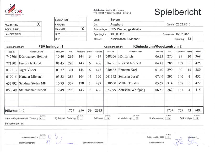 2.H: FSV Inningen - KM Königsbrunn-Kegelzentrum