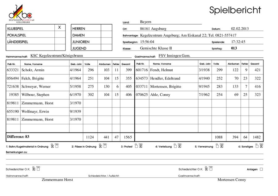 G: KM Kegelzentrum-Königsbrunn - FSV Inningen