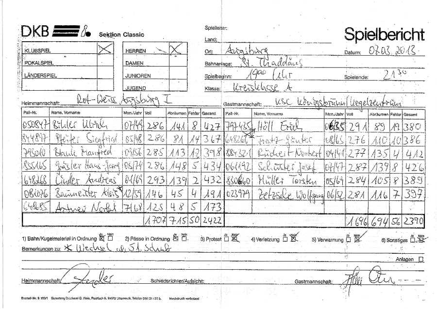 2.H: Rot Weiß Augsburg - KM Königsbrunn-Kegelzentrum
