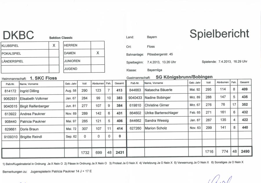 F: SKC Floß 1 - SG Königsbrunn-Bobingen 1